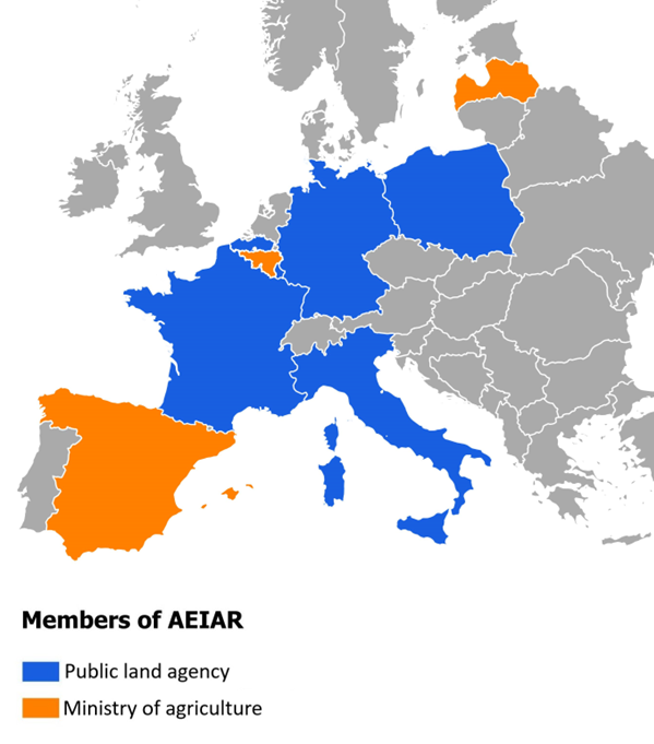 As on february 2026 A.E.I.A.R. gathers land agencies and national and regional ministeries of agriculture from 8 member states.